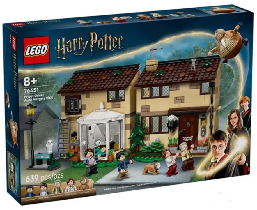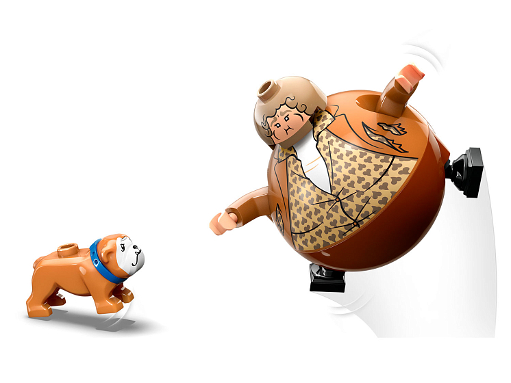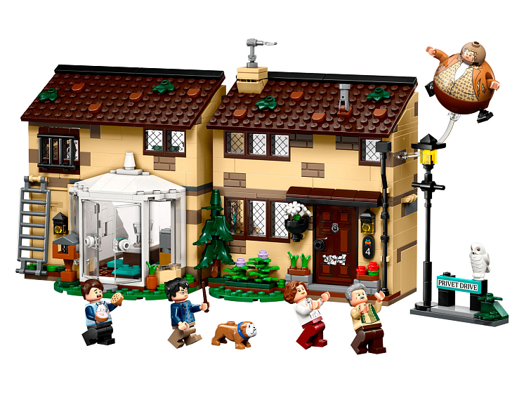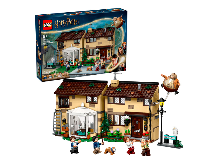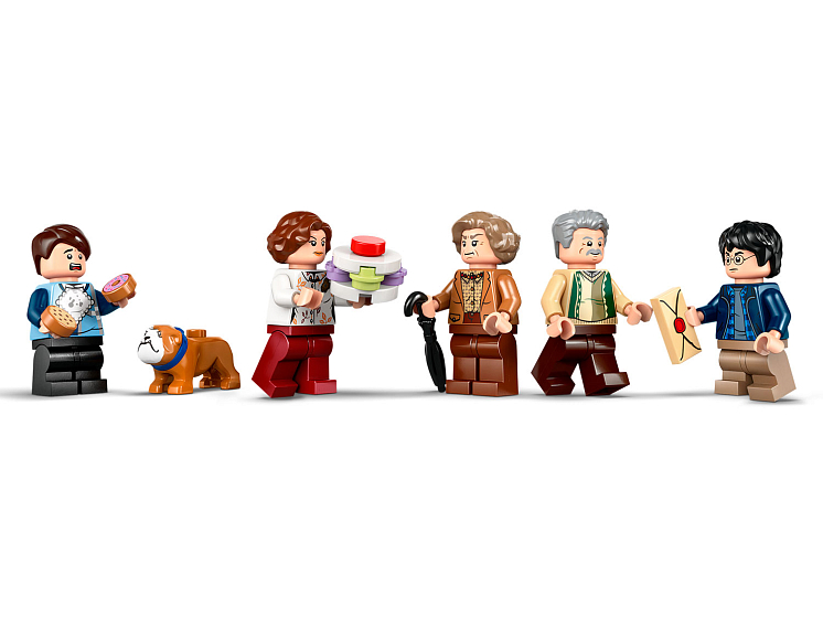 - Минифигурки (5 шт.): Мардж Дурсль, Вернон Дурсль, Петуния Дурсль, Дадли Дурсль, Гарри Поттер