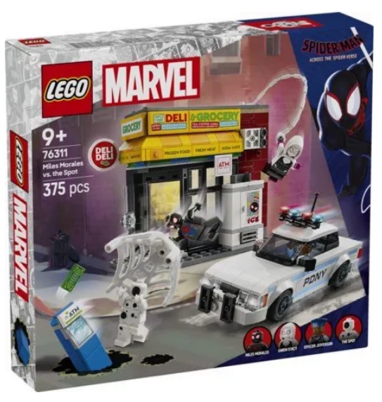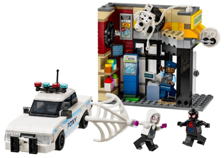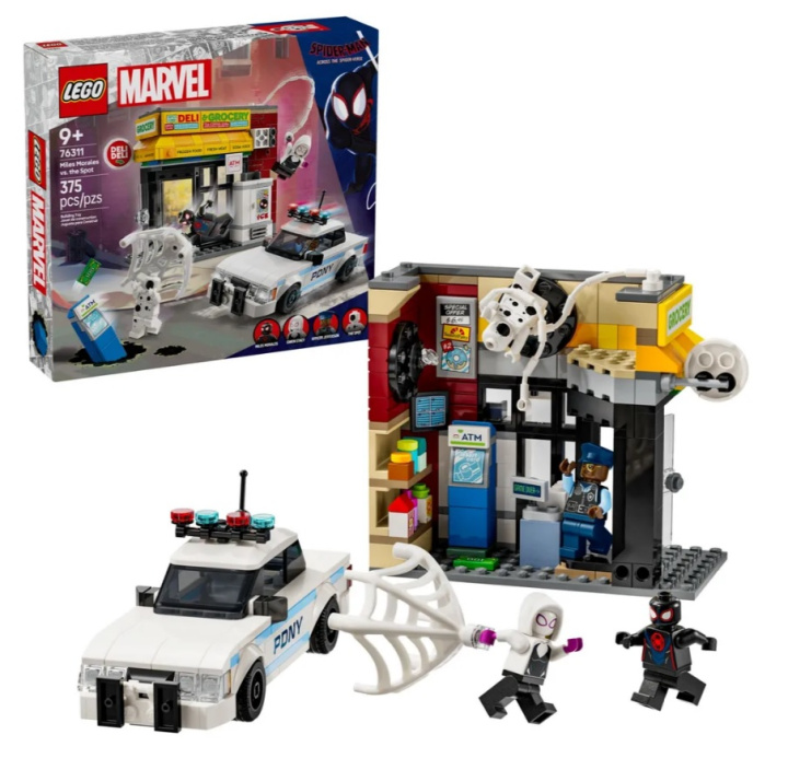 - Минифигурки: Майлз Моралес, Пятно, Гвен Стейси, офицер Джефферсон