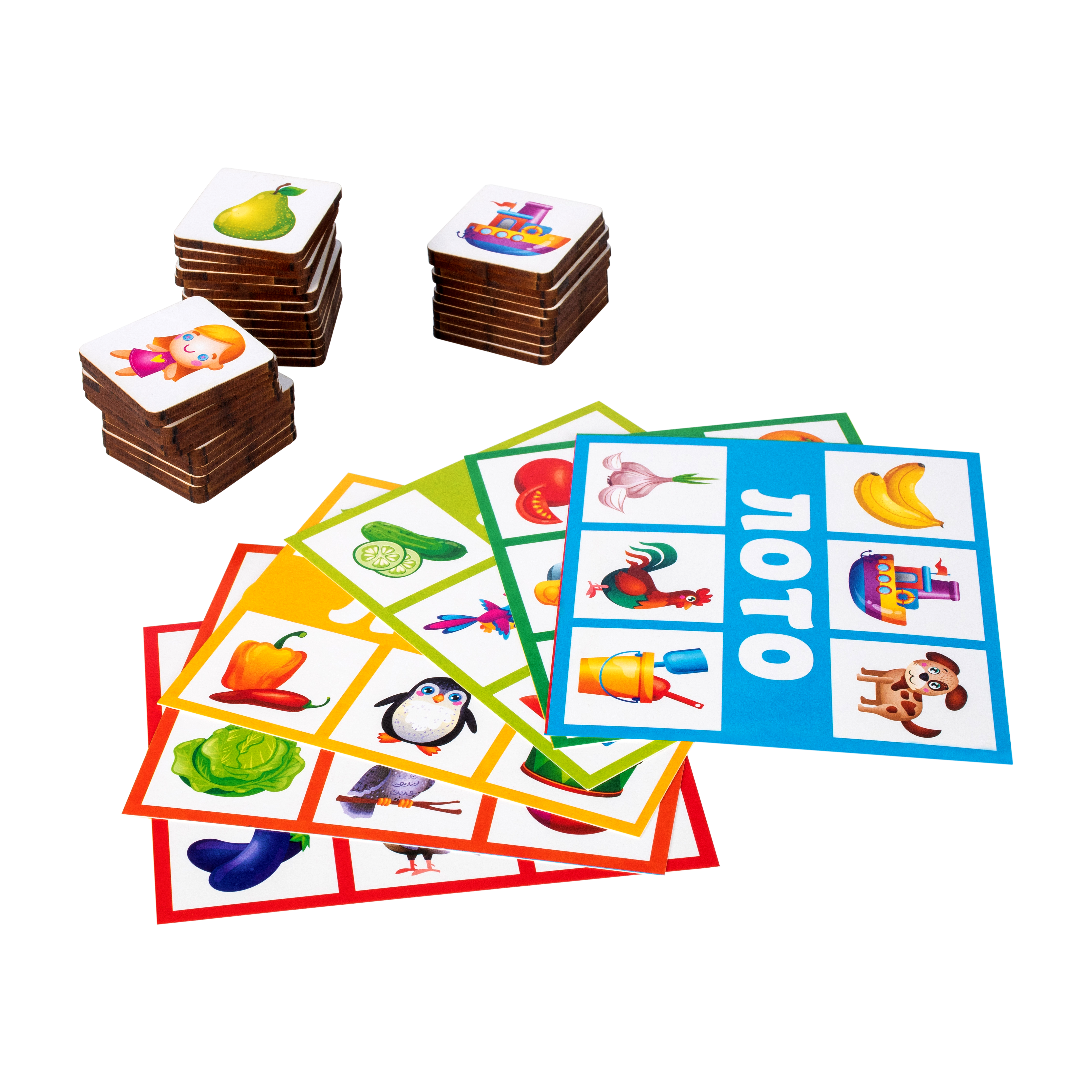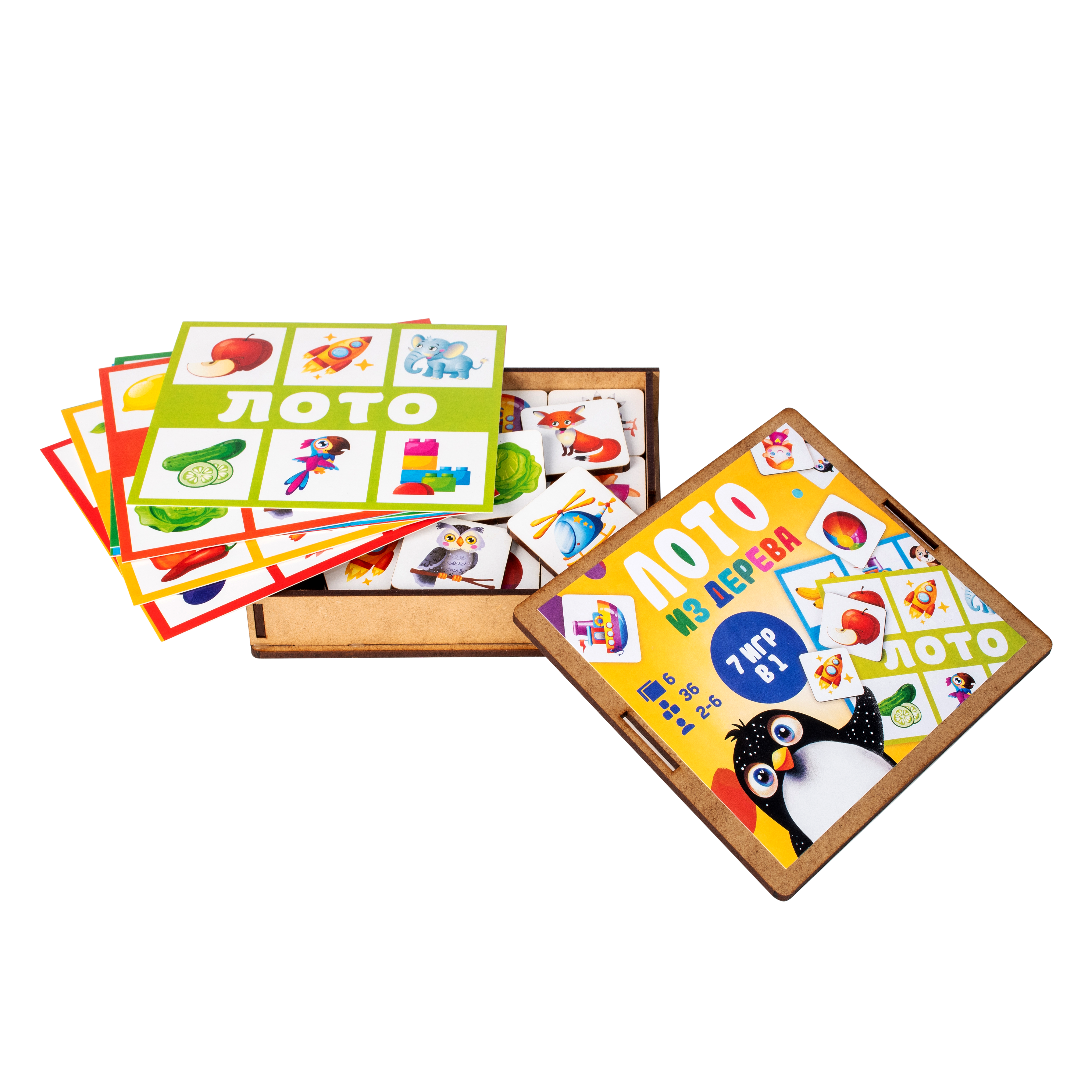 В наборе: фишки 36 шт., карточки 6 шт., деревянная коробка.