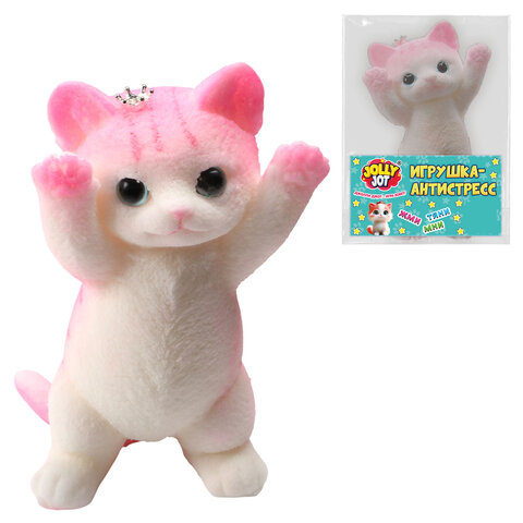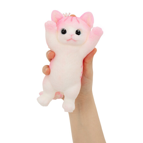 Размером 20 см, этот милый котик удобно лежит в руке, его приятно мять и сжимать.