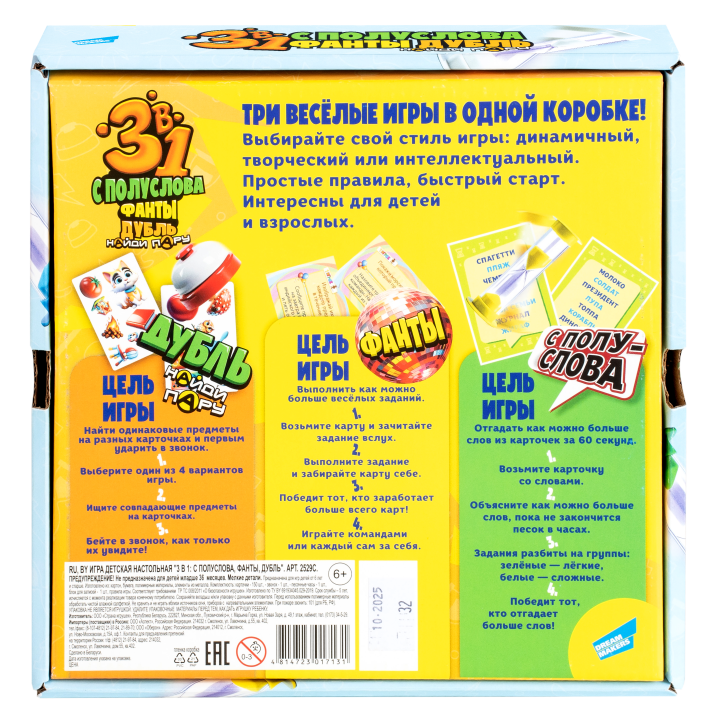 Настольная детская игра Dream Makers "3 в 1: С полуслова, Фанты, Дубль"