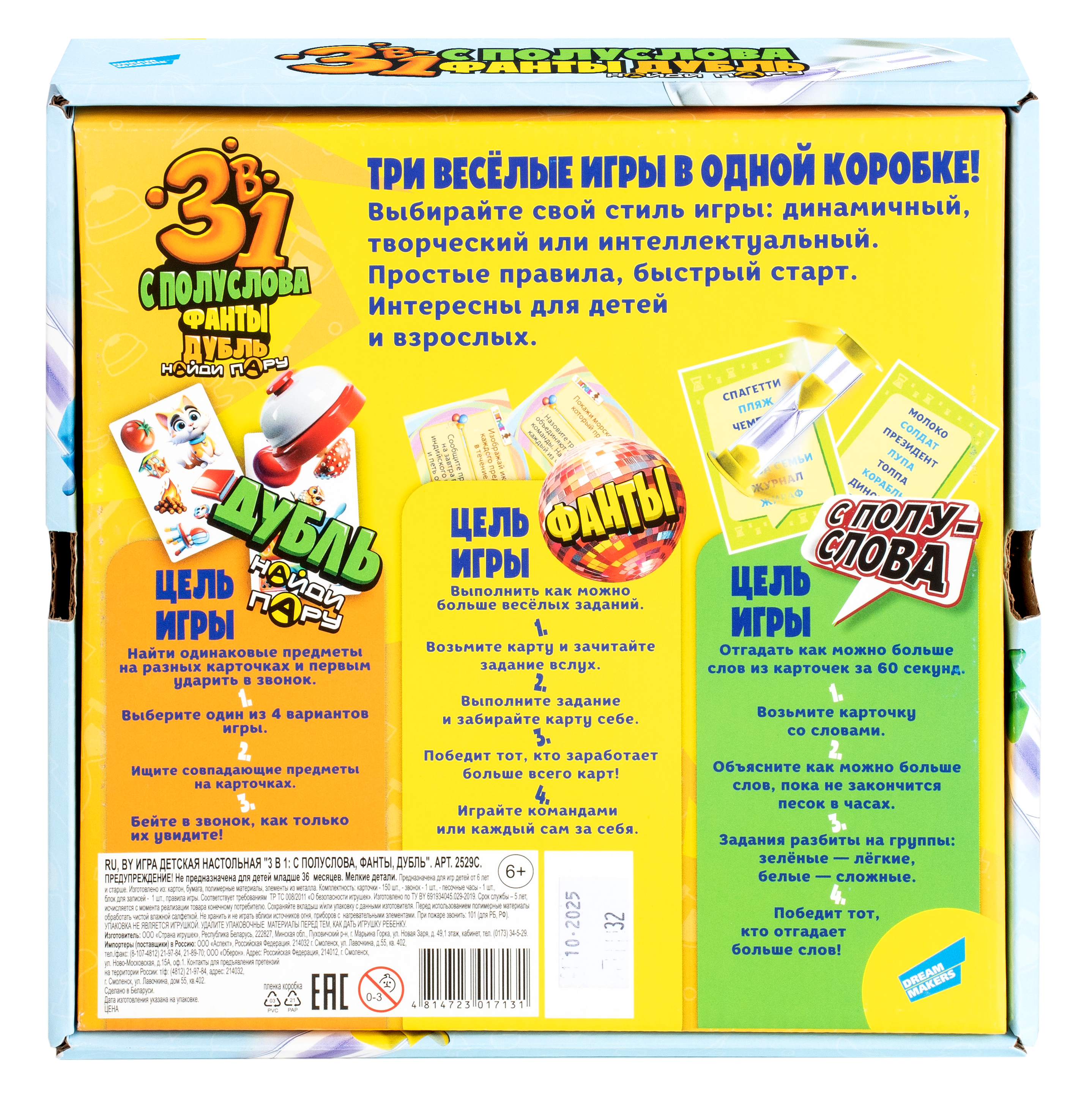 Настольная детская игра Dream Makers "3 в 1: С полуслова, Фанты, Дубль"