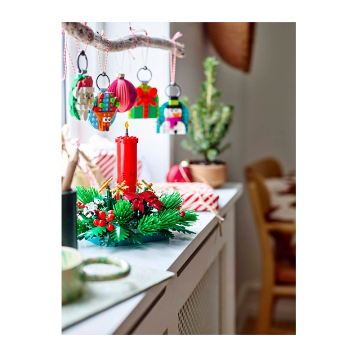 Веселый праздничный проект, включающий красную свечу, окруженную красными ягодами, золотыми звездами и зеленой листвой, этот рождественский набор LEGO поощряет творческий потенциал детей, пока они строят праздничный декор, прежде чем украсить его праздничными элементами. Этот набор для декора отлично подходит для самостоятельной или групповой сборки, он предлагает способ сблизиться с близкими во время праздников, а после завершения он становится рождественским украшением LEGO, которое будет приносить радость каждый год.