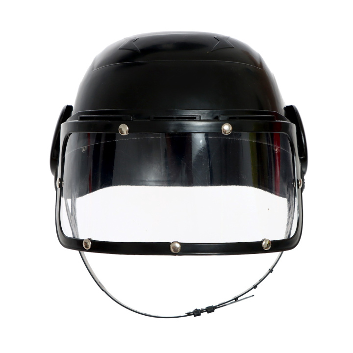 Шлем выполнен в чёрном цвете и повторяет дизайн экипировки полицейских подразделений.