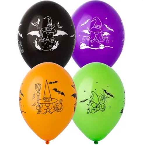 Эти воздушные шары с забавными гномами в хэллоуинском стиле станут прекрасным украшением для вашего праздника. Благодаря круговой печати рисунок будет отлично виден в любых гирляндах и композициях. Изготовленные из натурального латекса, шары не только создают атмосферу веселья, но и заботятся об окружающей среде.