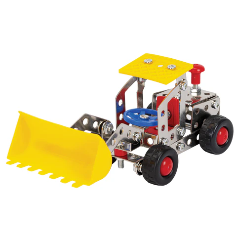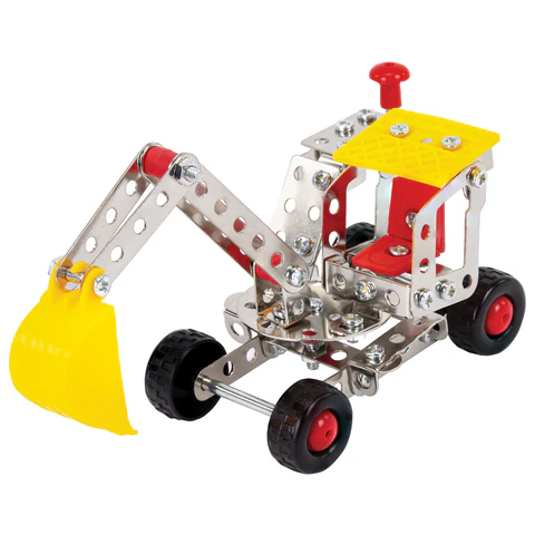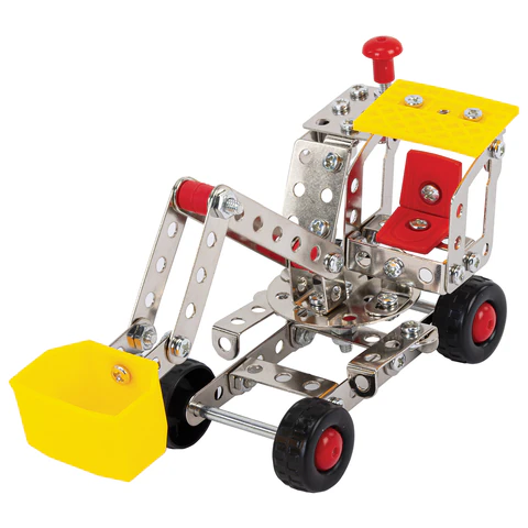 Каждый элемент металлического конструктора BAMBOX "Строительная техника 5 в 1" продуман до мелочей. Круглые отверстия упрощают соединение деталей, а набор инструментов позволяет надежно закрепить их винтами и гайками.