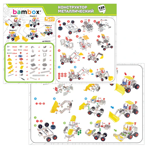 Конструктор металлический BAMBOX "Строительная техника 5 в 1", 139 элемента
