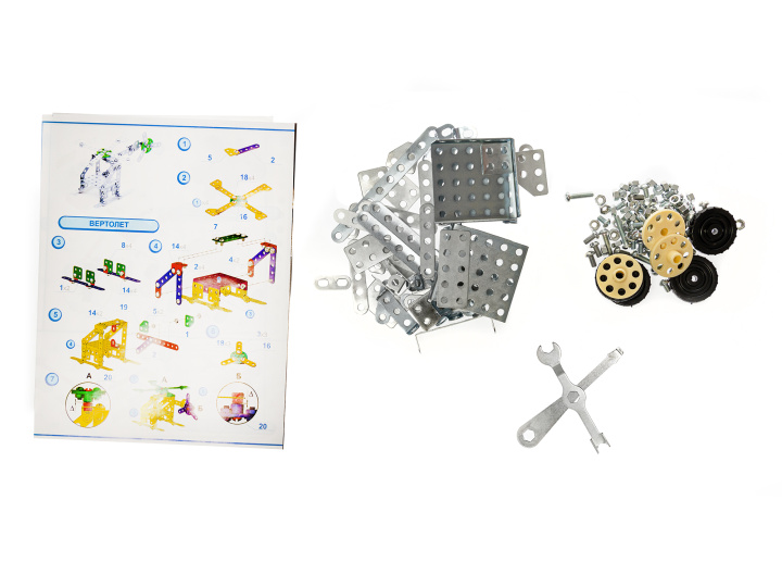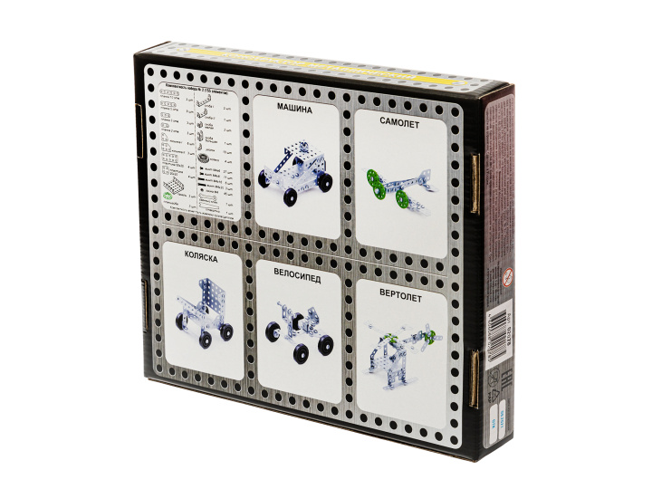 Откройте для своего ребёнка увлекательный мир конструирования! С помощью этого набора Вы сможете создать 5 моделей начальной сложности - машинка, коляска, самолет, вертолет и велосипед..