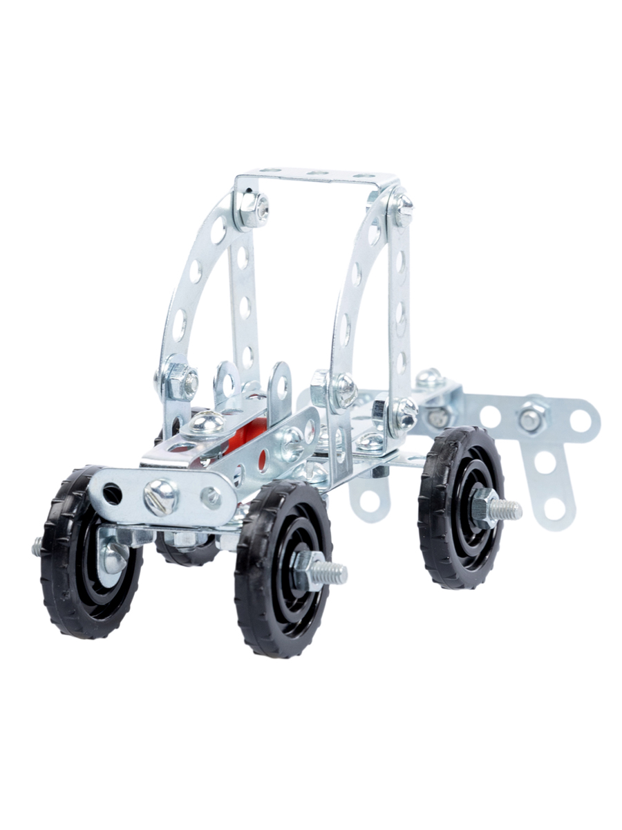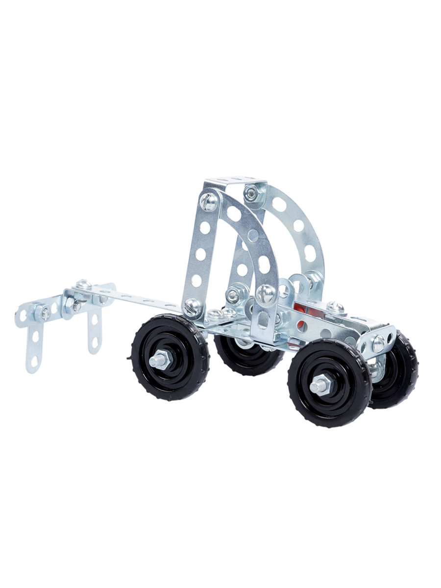 Все детали серии металлических конструкторов имеют единый формат: размер варьируется от 2 до 15 см, толщина – 0,8 мм, расстояние между центрами отверстий – 10 мм. Крепёж имеет резьбу М4, длина болтов варьируется от 6 до 35 мм, а длина шпильки составляет 75 мм.