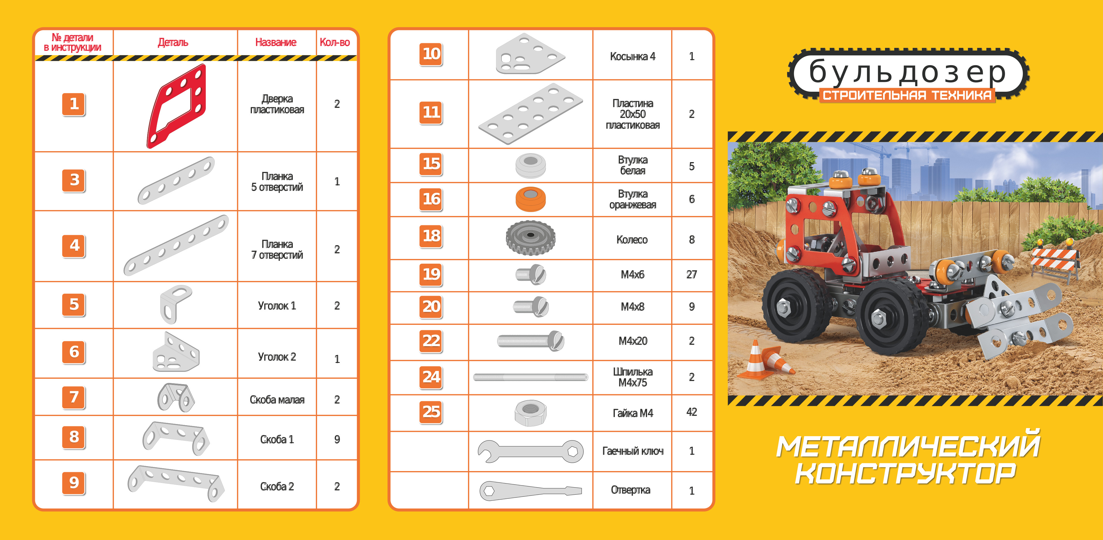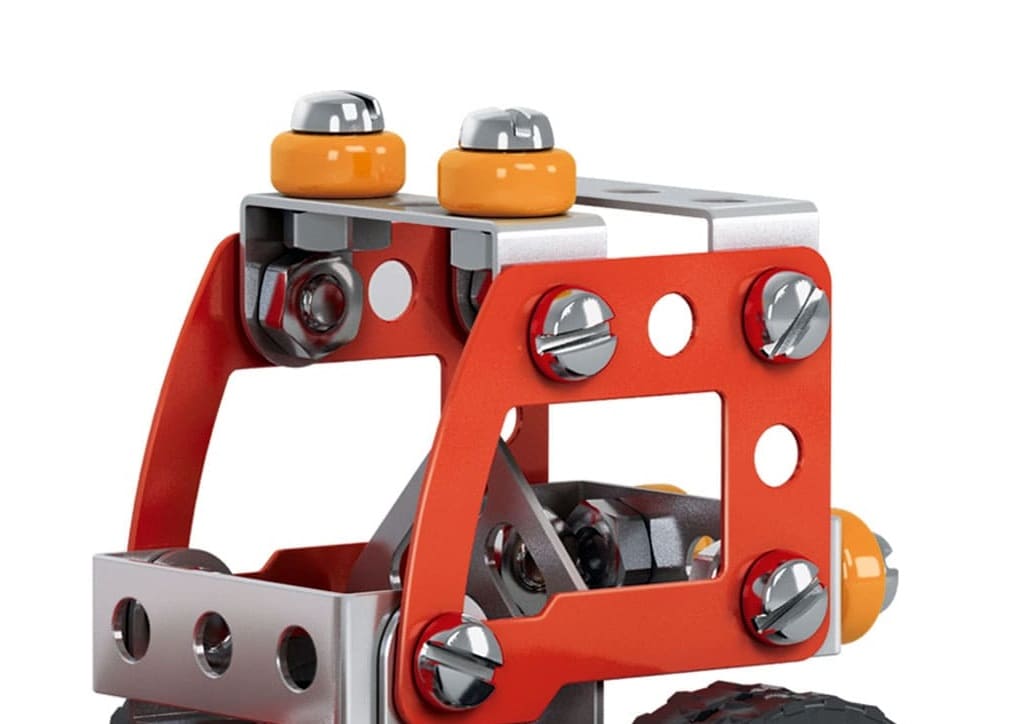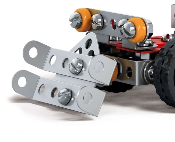 Из комплектующих этого металлического конструктора можно собрать Бульдозер. В процессе сборки ребёнок познакомится с основами моделирования, конструирования и интересно проведет время. Благодаря подвижным элементам, в машину будет интересно играть. Процесс сборки развивает логическое и пространственное мышление, усидчивость, мелкую моторику рук и фантазию.
