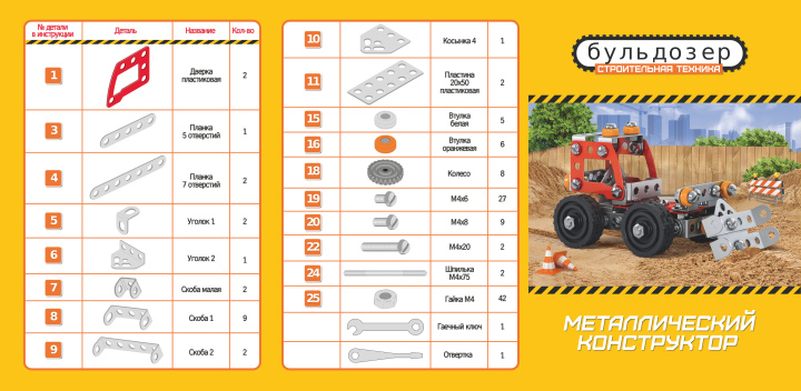 Конструктор металлический Десятое королевство Строительная техника "Бульдозер"