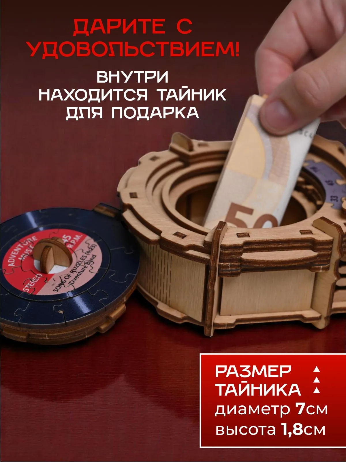• 22 элемента пазла собираются на головоломке и образуют форму виниловой пластинки в собранном виде.