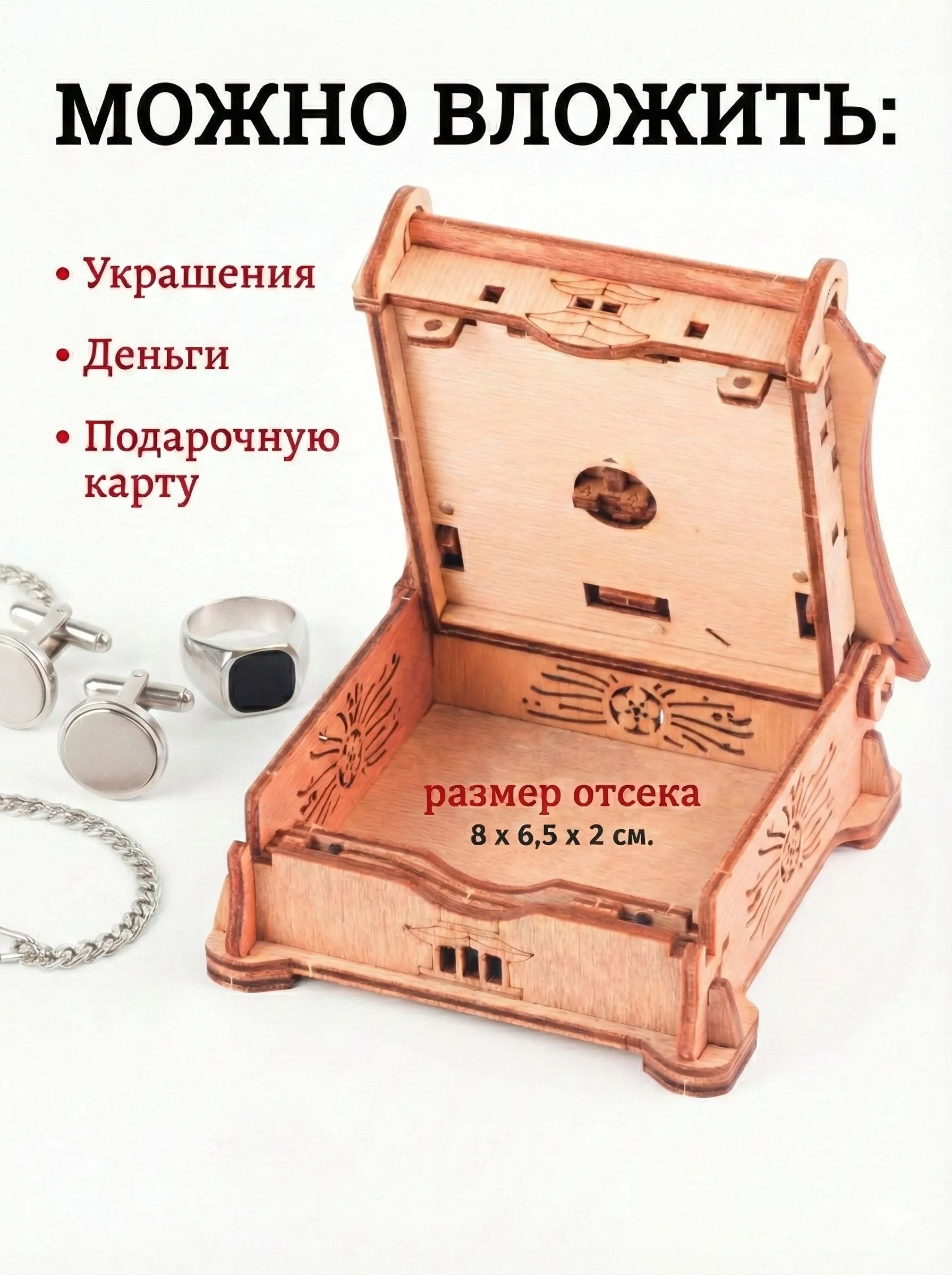 Оставьте сюрприз внутри — вложите в тайник квестбокса деньги, кольцо или другой небольшой подарок — и сделайте игру еще приятнее.