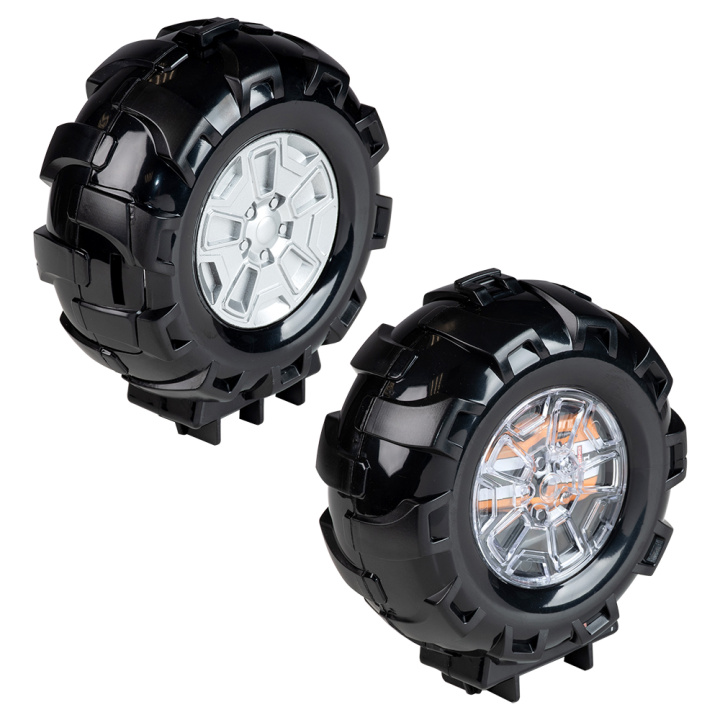 Металлическая машинка в стильном гараже в виде колеса, который превращается в пусковую установку.