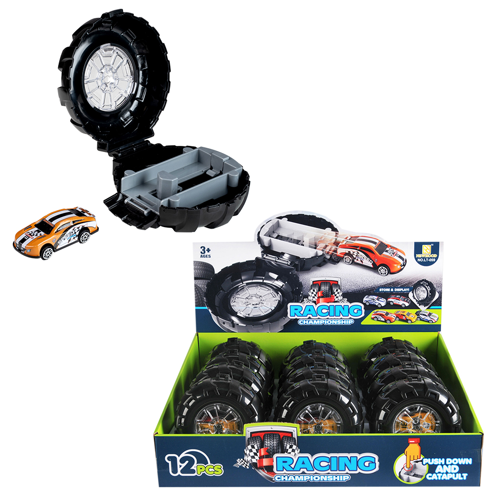 Принцип работы игрушки прост: достаточно отвести механизм назад, поставить машинку в пусковой отсек и нажать на кнопку – машинка стремительно вылетает вперед, готовая к гонке.