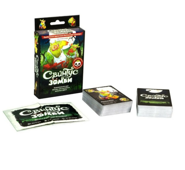 "Свинтус Зомби" - это увлекательная карточная игра, которая сочетает в себе простые правила, динамичный геймплей и остроумный юмор. В этой версии классической игры появились новые карты - вирусы и вакцины, которые добавляют дополнительные стратегические возможности и делают каждую партию непредсказуемой. Игра идеально подходит для вечеринок, семейного досуга и любых компаний, где ценят весёлое и азартное времяпрепровождение. Яркое оформление и качественные компоненты делают "Свинтус Зомби" отличным подарком для всех любителей настольных игр.