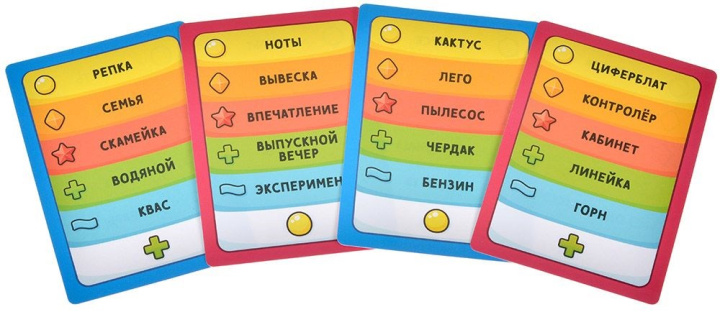 Игроки по очереди объясняют слова с карточек задания одним из трёх способов: вербальным описанием (без однокоренных слов), рисунком или пантомимой. Остальные участники пытаются угадать загаданное слово. Карты действий определяют способ объяснения. Побеждает самый догадливый и артистичный игрок.
