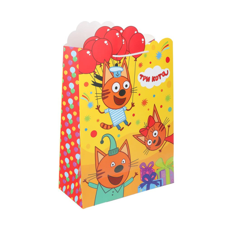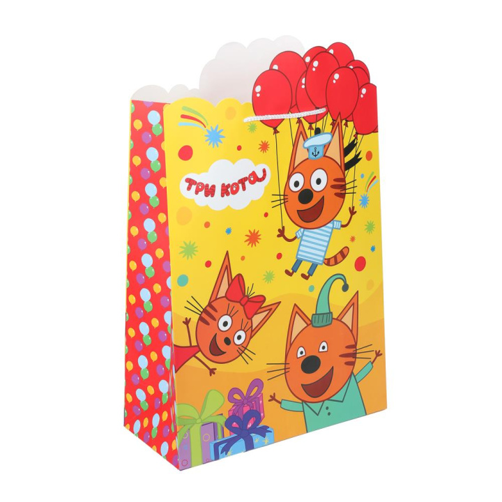 Подарочный пакет «Три кота» ТМ «Чудо-праздник» станет отличным дополнением к вашему подарку и сделает его незабываемым: