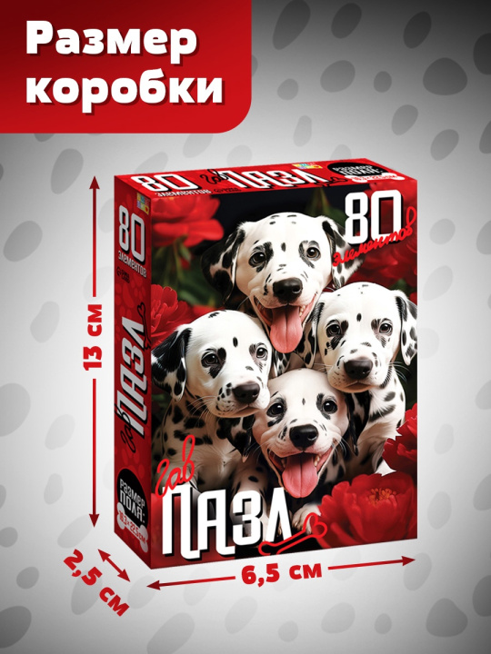 Пазл картонный PUZZLE TIME "Милые щенки", 80 элементов