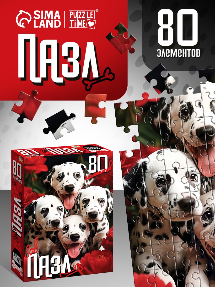 Пазл картонный PUZZLE TIME "Милые щенки", 80 элементов
