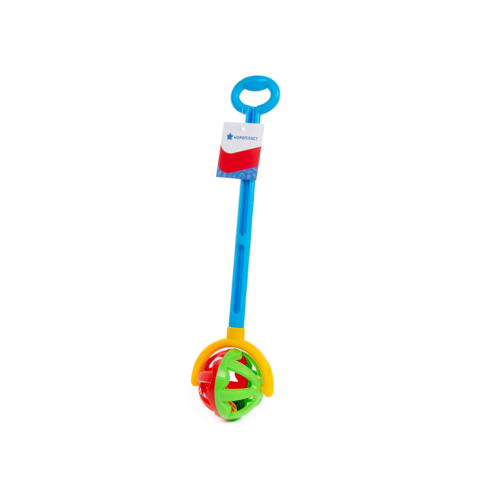 Каталка с ручкой Полесье "Шарик" (зелено-красная)