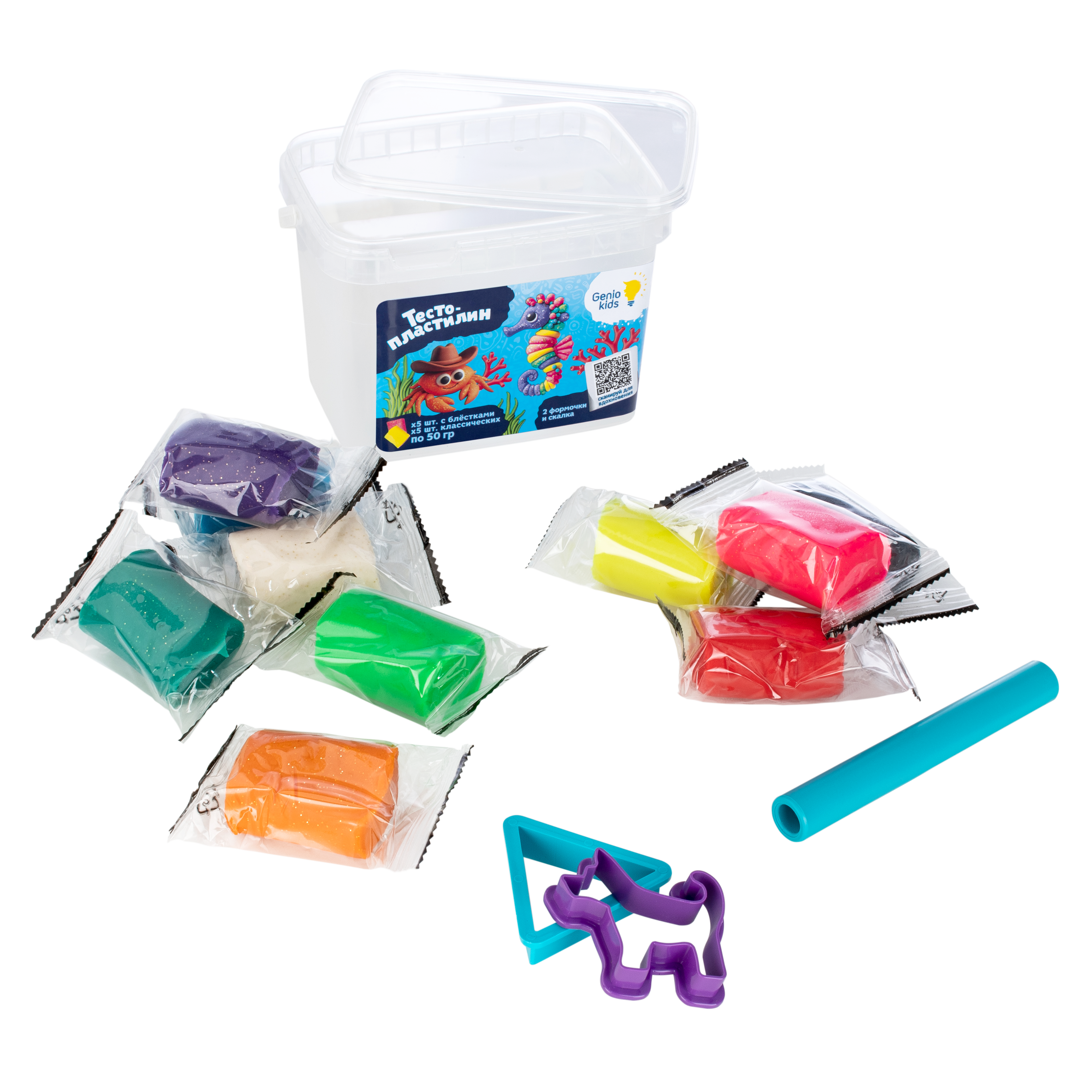 Игра с тестом-пластилином Genio Kids – это прекрасное развлечение для ребенка. При помощи инструментов и аксессуаров, входящих в комплект набора, ваш ребенок сможет слепить из цветного теста любые фигурки и украсить их. В комплекте 5 классических цветов и 5 цветов с блестками. Пластилин изготовлен из высококачественных натуральных компонентов и не вызывает аллергии. Пластилин не пачкает руки и не оставляет следов на мебели, стенах и одежде. Genio Kids вдохновляет на творчество снова и снова!