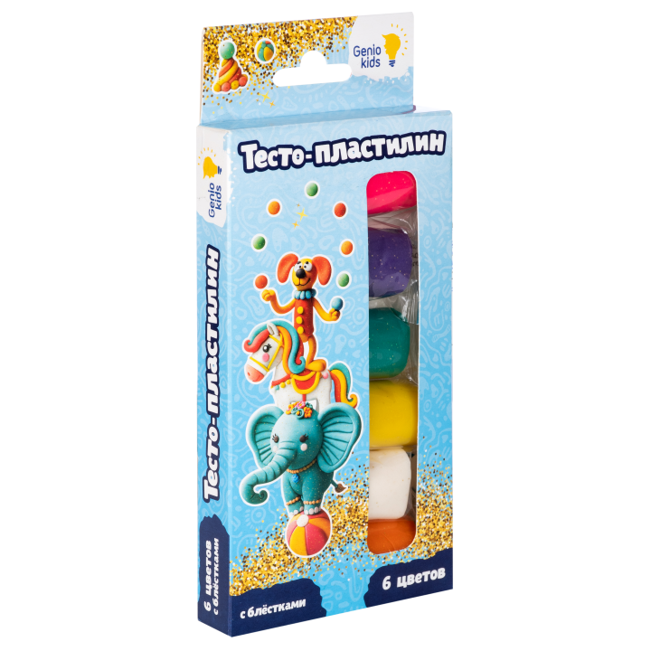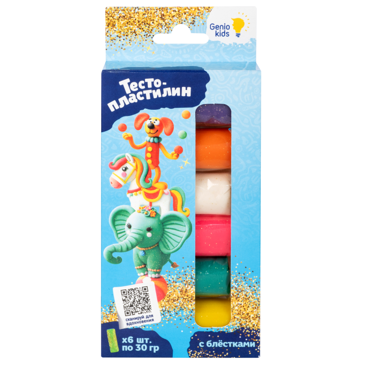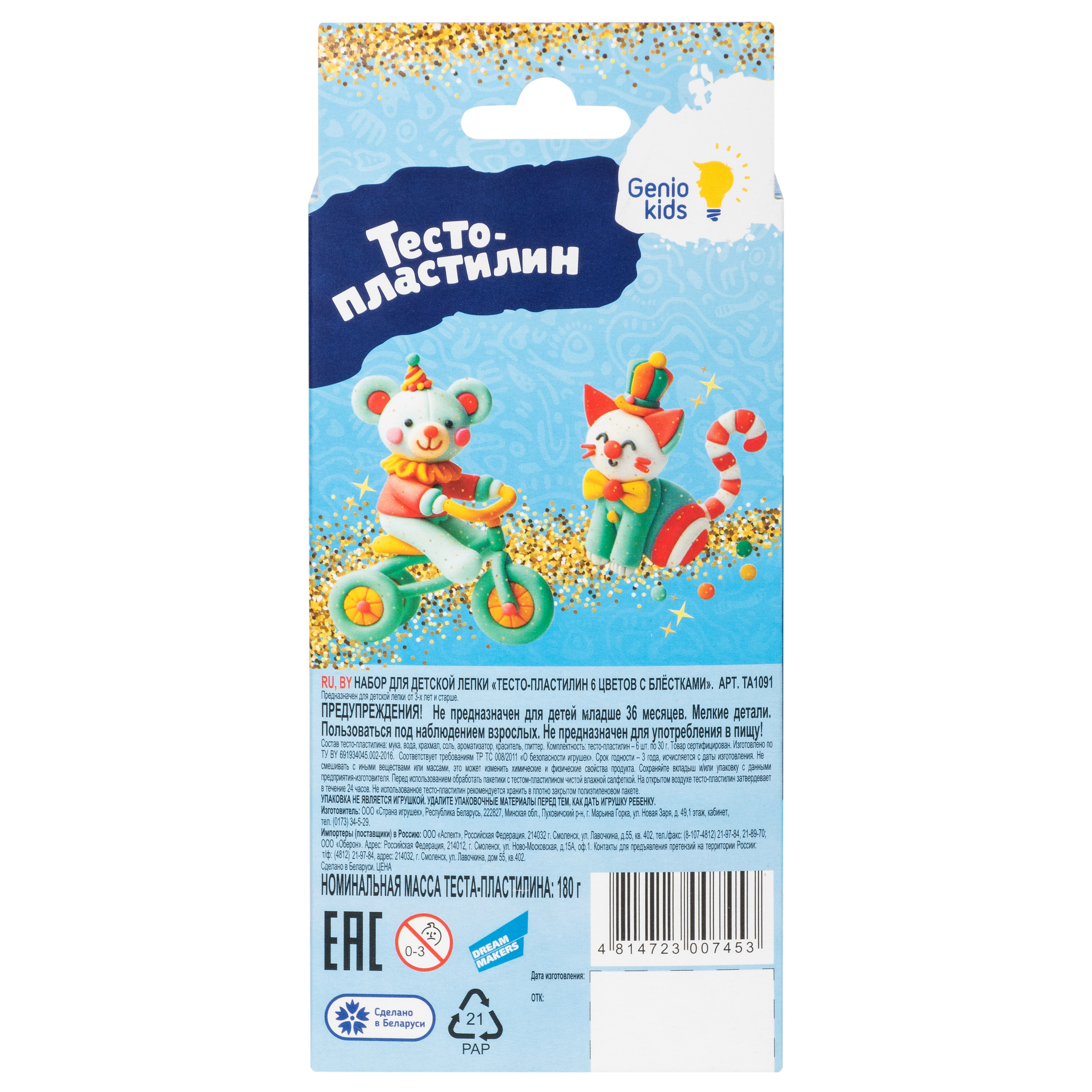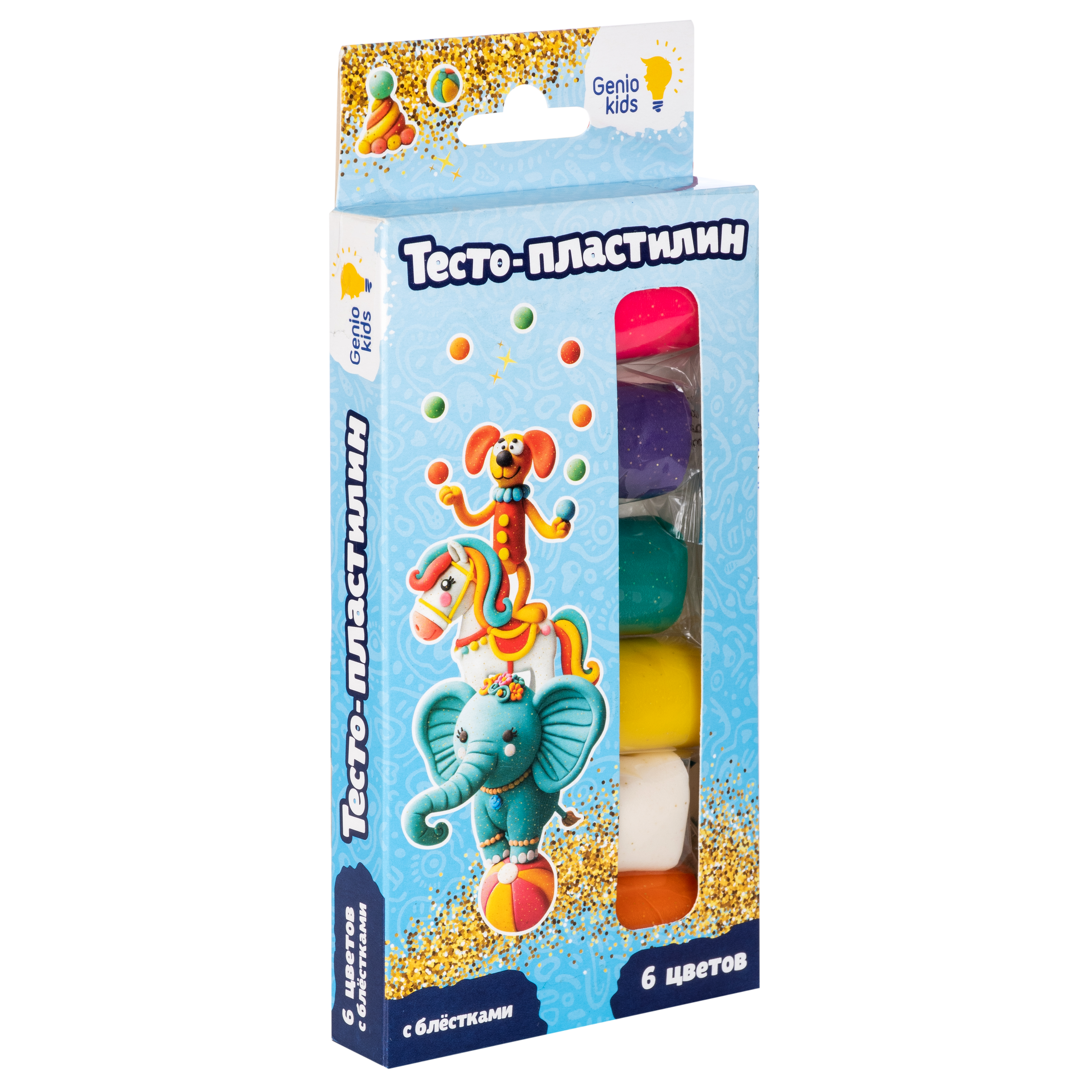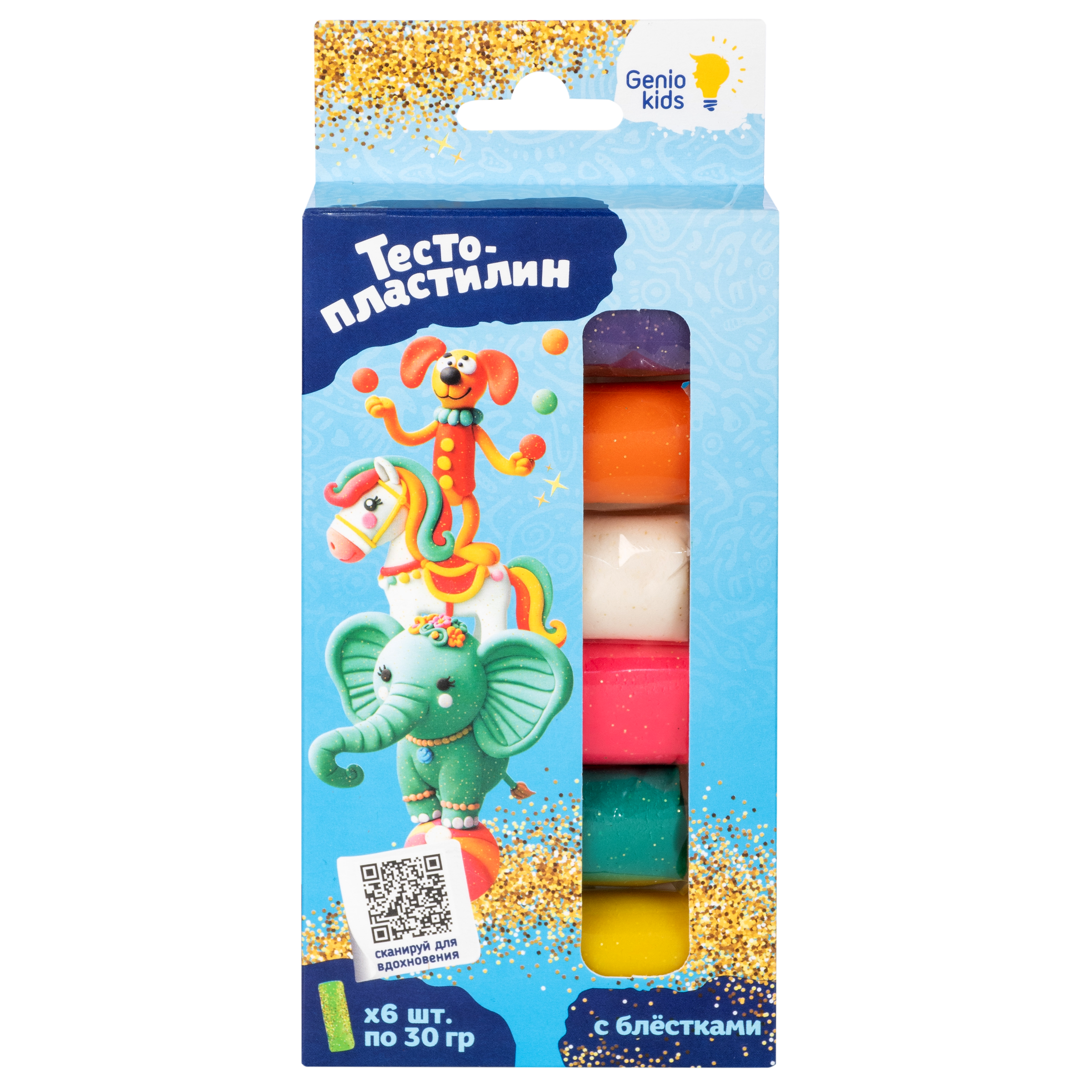 Тесто-пластилин Genio Kids Набор с блестками 6 цветов, 180 гр