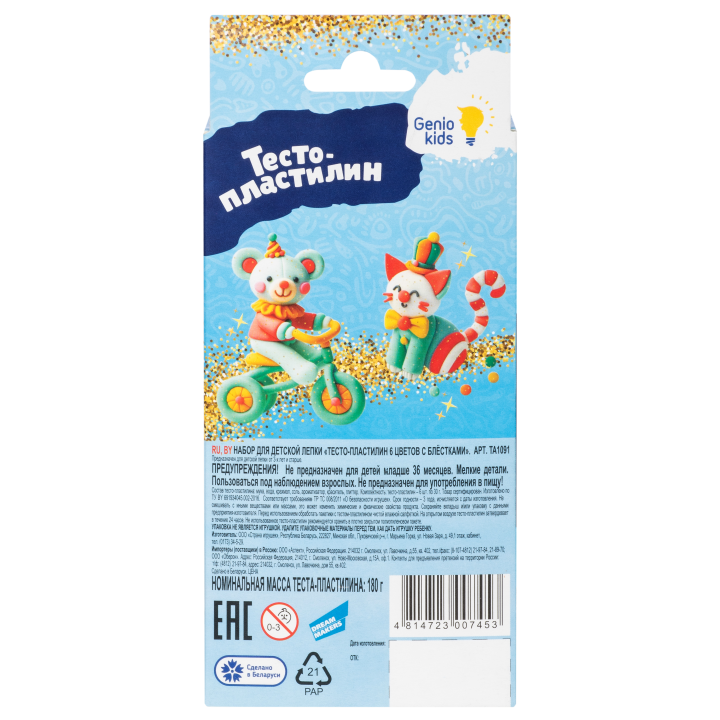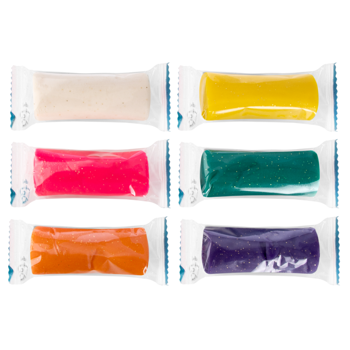 В наборе: 6 пакетиков тесто-пластилина по в индивидуальной упаковке.
