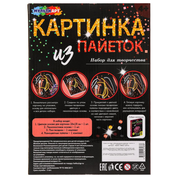 Набор для детского творчества МУЛЬТИ АРТ Аппликация "Лошадь" из пайеток