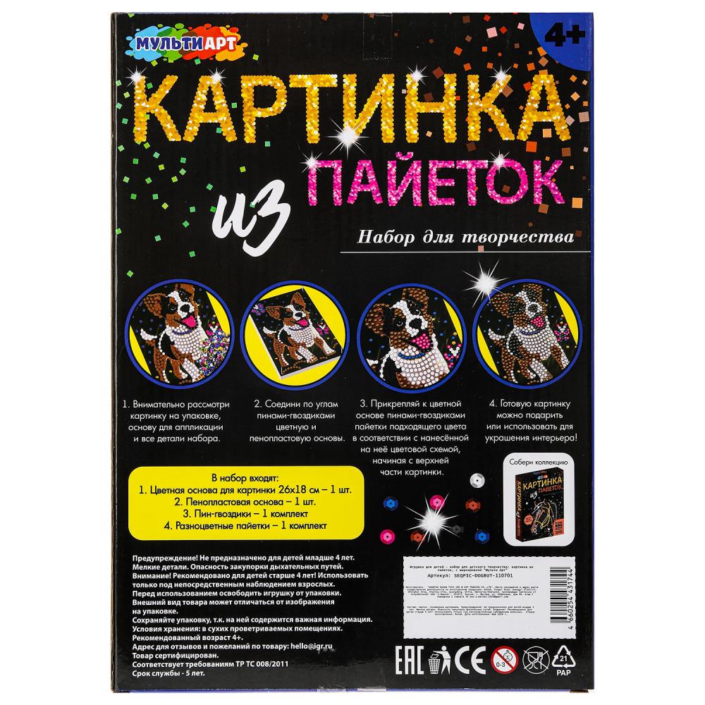 Набор для детского творчества МУЛЬТИ АРТ Аппликация "Собака с бабочкой" из пайеток