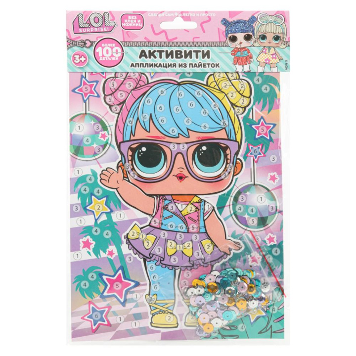 С помощью этого набора юная художница сможет самостоятельно создать сверкающую аппликацию с изображением милой малышки-модницы. Готовую поделку можно подарить близким или использовать для украшения интерьера.