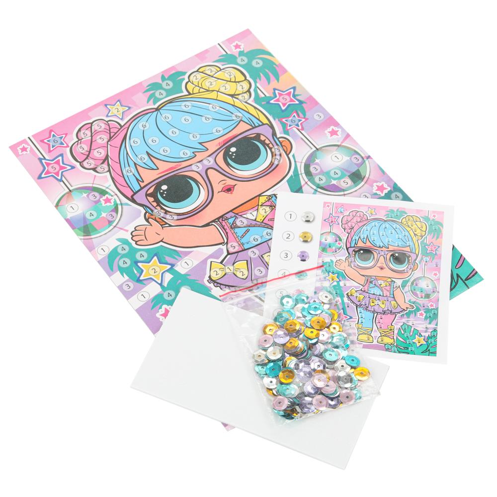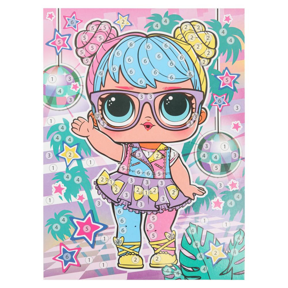 С помощью этого набора юная художница сможет самостоятельно создать сверкающую аппликацию с изображением милой малышки-модницы. Готовую поделку можно подарить близким или использовать для украшения интерьера.
