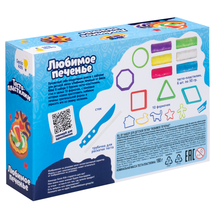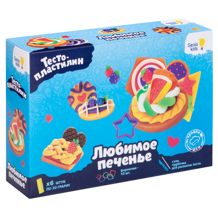 С набором для детской лепки "Любимое печенье" от белорусского бренда Genio Kids, ребенок сможет приготовить печенье любой формы и украсить его по своему желанию. В наборе 6 брусков теста-пластилина по 30гр и пластиковые аксессуары, которые помогут приготовить печенье.