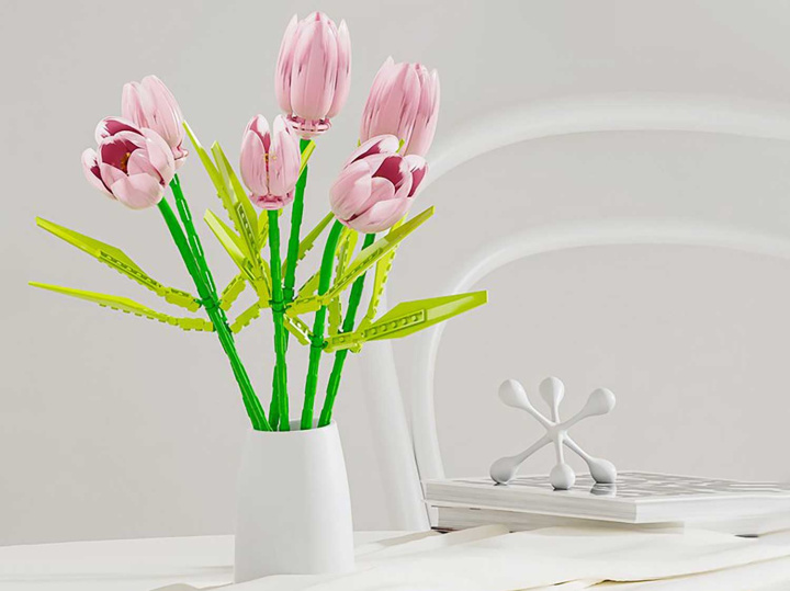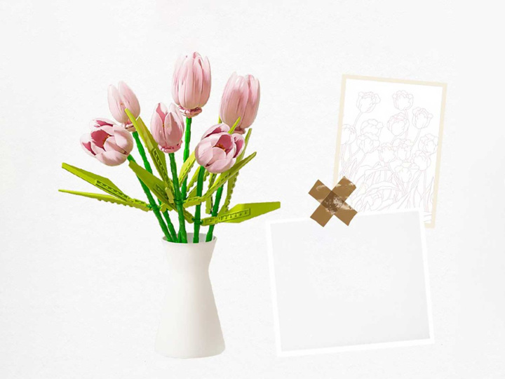 Конструктор предлагает вам создать собственный элегантный букет нежно-розовых тюльпанов. Готовая композиция выглядит невероятно реалистично и станет изысканным украшением интерьера, которое будет радовать вас долгие годы. Этот набор — прекрасный подарок для тех, кто ценит красоту и хочет надолго сохранить воспоминания о весне.