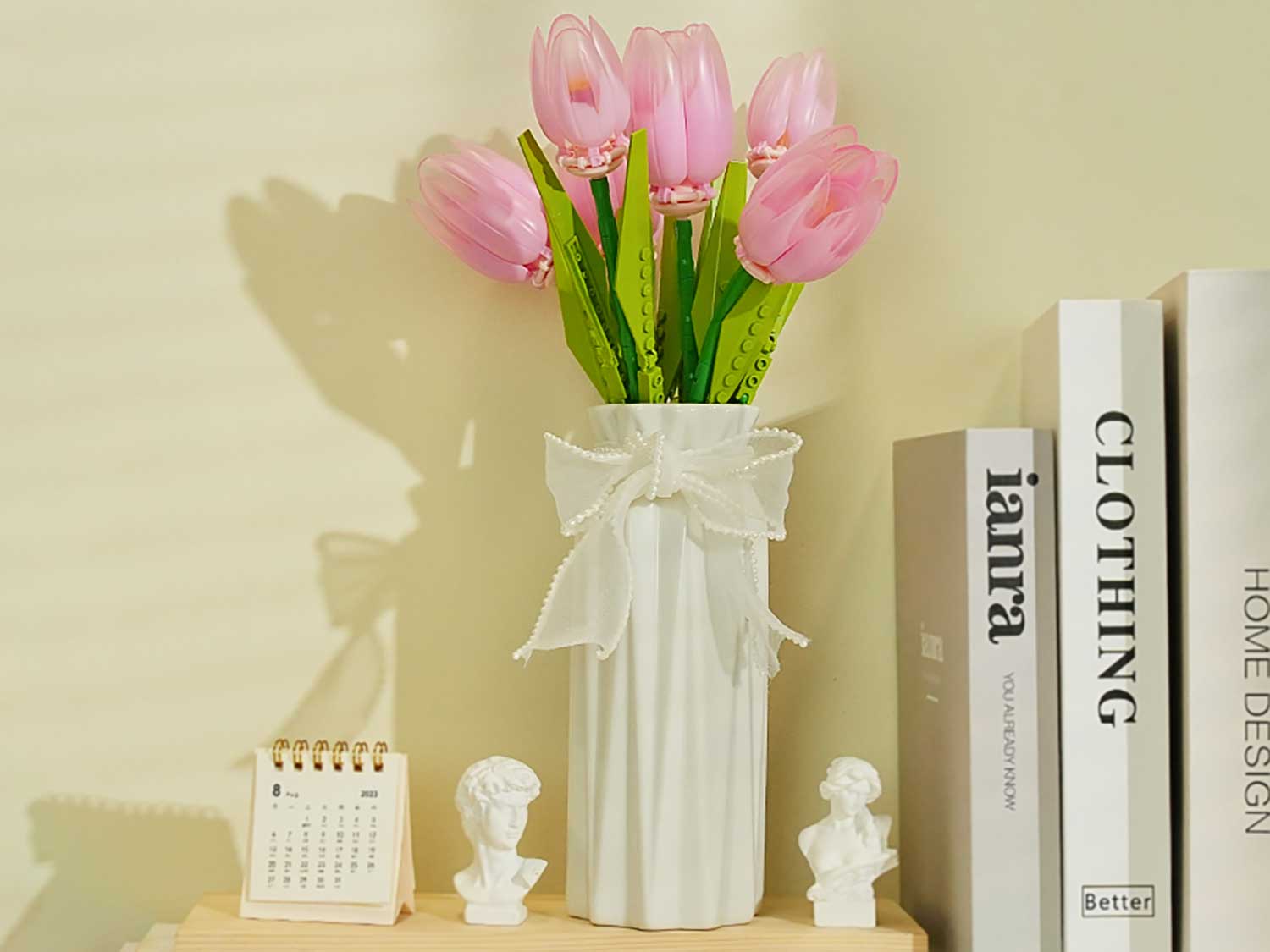 Конструктор предлагает вам создать собственный элегантный букет нежно-розовых тюльпанов. Готовая композиция выглядит невероятно реалистично и станет изысканным украшением интерьера, которое будет радовать вас долгие годы. Этот набор — прекрасный подарок для тех, кто ценит красоту и хочет надолго сохранить воспоминания о весне.