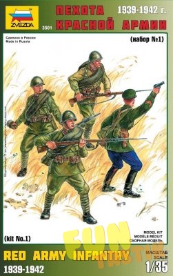 Набор из четырех фигур представляет собой группу бойцов Советской Армии во главе с командиром. Они одеты в полную походную форму начального периода Второй Мировой Войны. Солдаты вооружены винтовками системы Мосина и Токарева. На коробке представлена схема сборки солдатов.